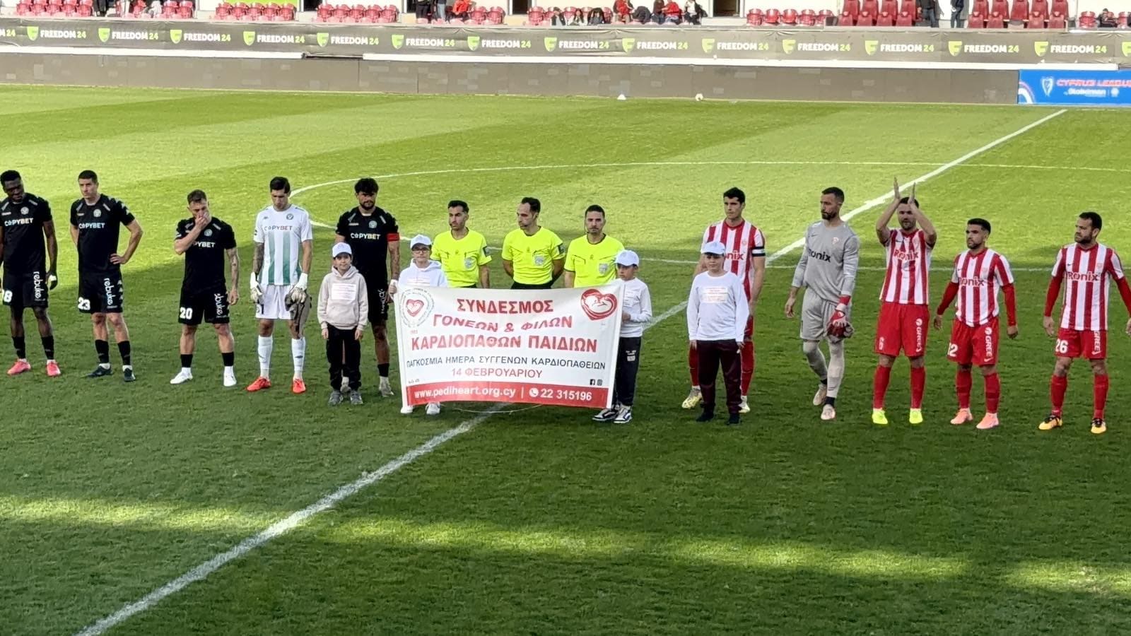 Σε ακόμη μία δράση του θεσμού «Ένα Γκολ, Μια Ελπίδα», ο κόσμος της ομάδας μας έδειξε έμπρακτα τη στήριξή του στον Σύνδεσμο Συγγενών και Φίλων Παιδιών με Καρδιοπάθειες. Ξεχωριστή στιγμή το πέναλτι του μικρού Κυριάκου, που συγκίνησε και καταχειροκροτήθηκε από όλους.